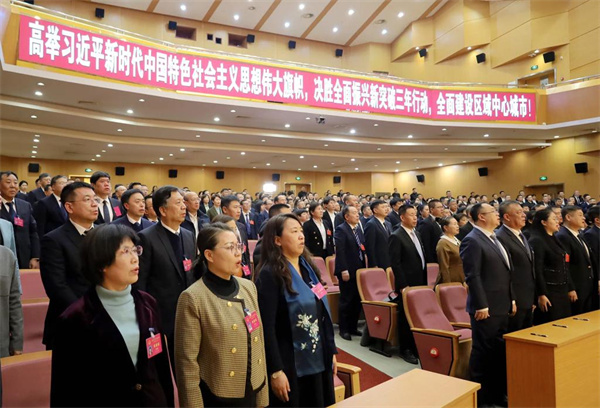 市領導王心宇、于鵬、劉魁毅、陳凱、張大軍、劉希明、楊旭、李金兵、張猛、繆徵閣、蔣立新、宋曉東、孫志海、王曉科、楊林、王秀錦、徐鑫、馮長偉、蘇貴宏、周立軍、謝麗和大會主席團成員在主席臺就座。