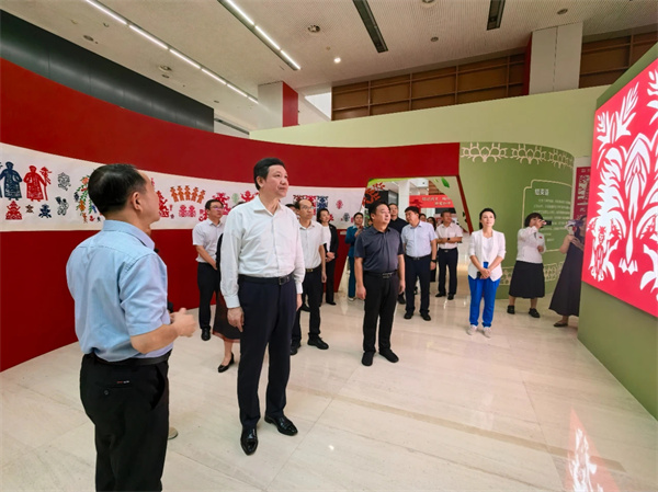 靳國(guó)衛(wèi)在參觀過程中,仔細(xì)欣賞了各類剪紙作品,并與非遺傳承人親切交流,詳細(xì)了解剪紙技藝的保護(hù)與傳承情況。靳國(guó)衛(wèi)指出,要突出本土剪紙獨(dú)具特色的藝術(shù)價(jià)值,強(qiáng)調(diào)其人與自然和諧相處的內(nèi)涵,展現(xiàn)其貼近人民生活的本質(zhì);要加強(qiáng)宣傳推廣,提升剪紙展及剪紙藝術(shù)的影響力,建立傳承人譜系;要進(jìn)校園設(shè)立剪紙?zhí)厣n程,同時(shí)進(jìn)文化館、企業(yè)、社區(qū)等,推動(dòng)剪紙融入美育教育;要注重實(shí)際運(yùn)用與衍生品開發(fā),擴(kuò)大傳播范圍,以“用”促傳承;要鼓勵(lì)創(chuàng)新融合,推動(dòng)傳統(tǒng)剪紙形式與現(xiàn)代藝術(shù)理念結(jié)合,增強(qiáng)傳播力和接受度;要發(fā)揮帶動(dòng)作用,通過剪紙藝術(shù)帶動(dòng)群眾學(xué)習(xí)傳承各類非物質(zhì)文化遺產(chǎn),做好相關(guān)培育工作。