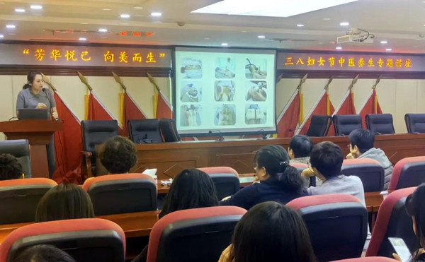 3月6日下午,在錦州八中,遼寧省名中醫(yī)傳承工作室負(fù)責(zé)人、錦州市中醫(yī)醫(yī)院崔小清教授,為女教職工帶來一場(chǎng)精彩的中醫(yī)養(yǎng)生專題講座。崔教授在中醫(yī)養(yǎng)生領(lǐng)域深耕多年,有著豐富的臨床經(jīng)驗(yàn)和深厚的學(xué)術(shù)造詣。她從中醫(yī)養(yǎng)生核心思想、四季養(yǎng)生要點(diǎn)、飲食調(diào)理原則、經(jīng)絡(luò)穴位保健、情志調(diào)節(jié)、健康生活方式六個(gè)方面為大家進(jìn)行了宣講。在經(jīng)絡(luò)養(yǎng)生環(huán)節(jié),崔教授現(xiàn)場(chǎng)示范了一些簡單的穴位按摩手法,按摩足三里穴,能增強(qiáng)脾胃功能;按壓合谷穴,緩解頭痛;按摩內(nèi)關(guān)穴,可寧心安神……女教職工們認(rèn)真學(xué)習(xí),紛紛動(dòng)手嘗試,現(xiàn)場(chǎng)氣氛熱烈。最后,崔教授還通過“望聞問切”的方式,為大家進(jìn)行詳細(xì)的體質(zhì)辨識(shí),量身定制個(gè)性化的養(yǎng)生方案,女教師們紛紛表示收獲頗豐。