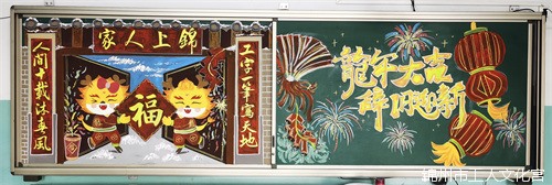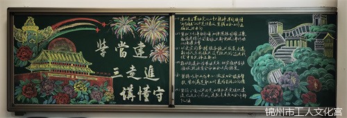 迎新年賀新春,為了進(jìn)一步營(yíng)造過年的氛圍,宮外掛春聯(lián),宮內(nèi)板報(bào)換新裝。以鮮艷的色彩和獨(dú)特的創(chuàng)意迎接新年的到來。這里有錦州元素,有創(chuàng)意年畫,更有對(duì)廣大職工群眾的新年祝福。充分展現(xiàn)了職工們團(tuán)結(jié)向上、充滿活力的工作態(tài)度,追求美好生活的精神風(fēng)貌。